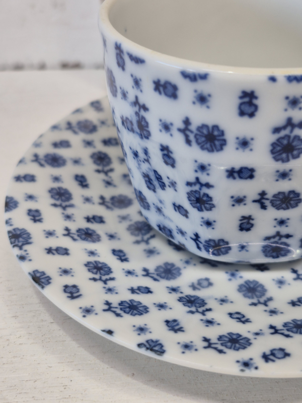 Dit zijn mooi gevormde, waarschijnlijk Japanse, porseleinen kopjes met een lief bloemetjes motief.