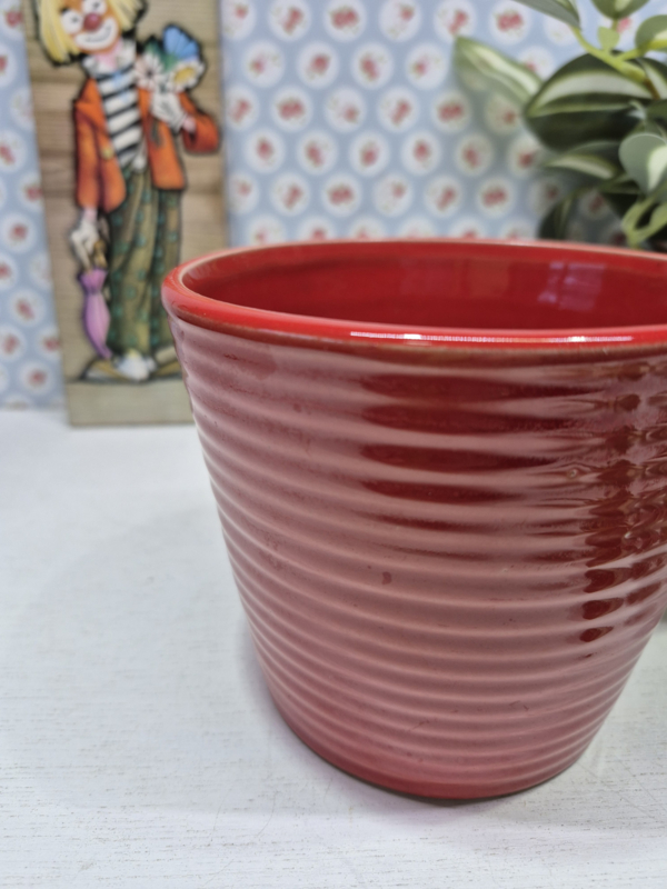 Een vintage aardewerk bloempot met ribbels gemaakt..