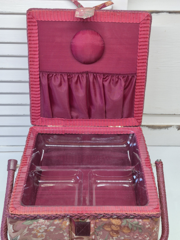 Deze vintage stoffen naaimand ziet er geweldig uit; alsof het niet gebruikt is.