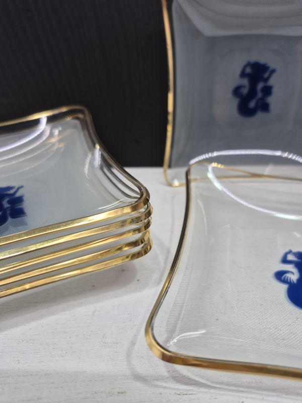 Gemaakt van dat hele dunne glas met een soort gaas patroon en een afbeelding van een zeemeermin.