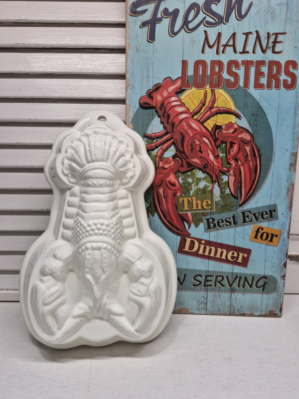 Kreeft vormWeer eens wat anders..een aardewerk vorm met een kreeft afbeelding.