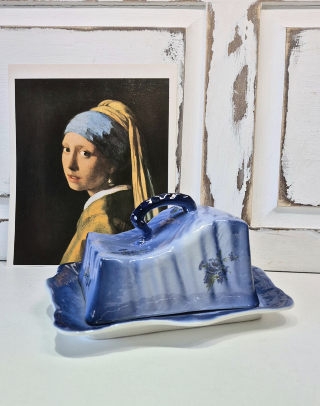 Deze kaasstolp is 15 cm hoog en staat op een onderbord met een doorsnee van 22 cm.€ 12.95