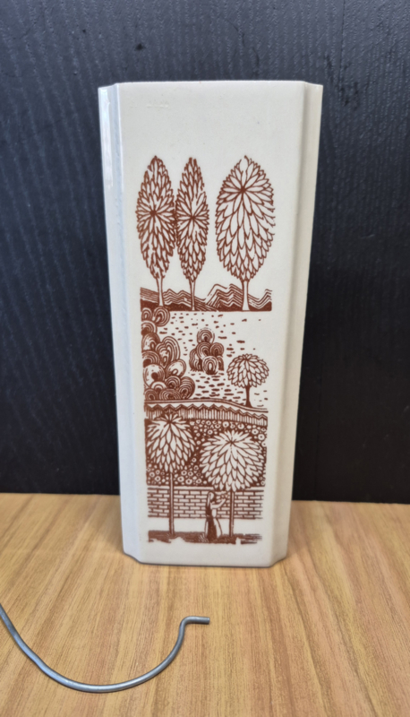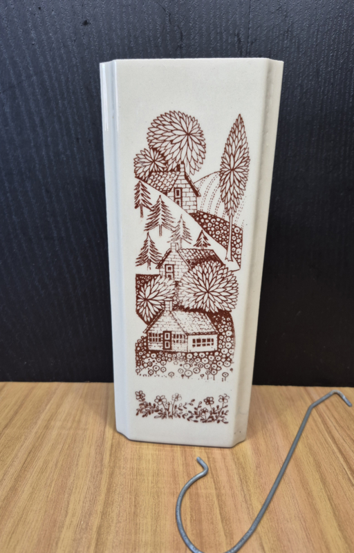 Crème geglazuurd met bruine vintage afbeedingen, 20 cm lang.€ 7.50