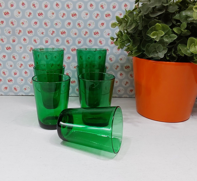 Voor een borreltje of likeurtje..€ 7.95 - 5 Franse groene limonadeglazen