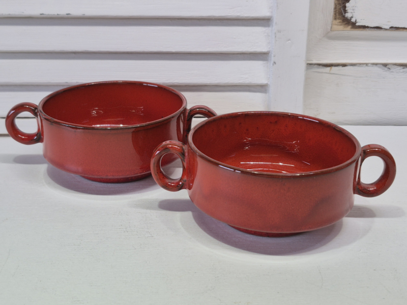 2 Retro soepkommen2 rood geglazuurde soepkommen van de jaren 60-70..