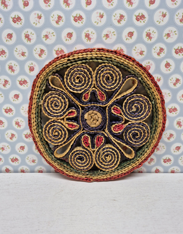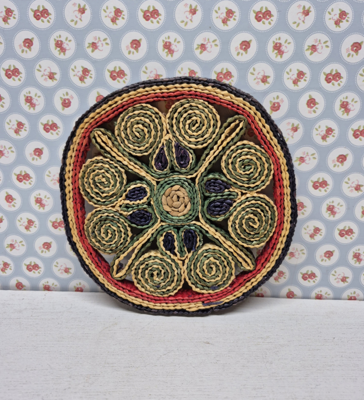 Een mooi brocante ornament is dit, te gebruiken als pannen onderzetter of als decoratie.