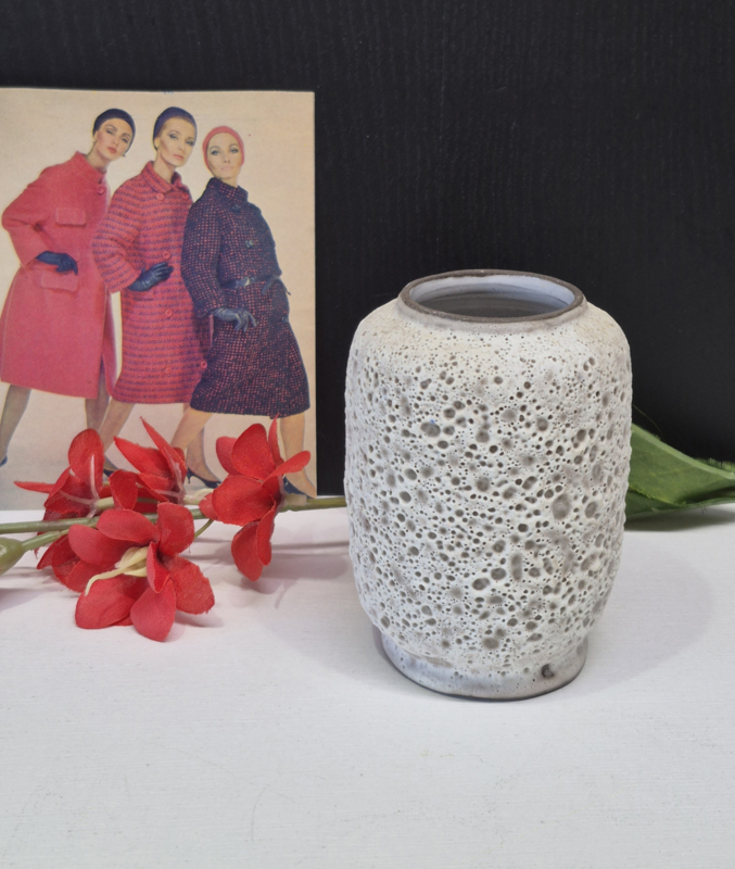 Retro vaasjeHet glazuur op dit 11 cm hoge vaasje wordt ook wel bruisglazuur genoemd.