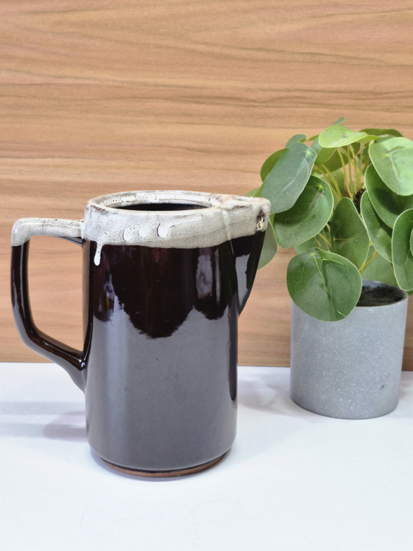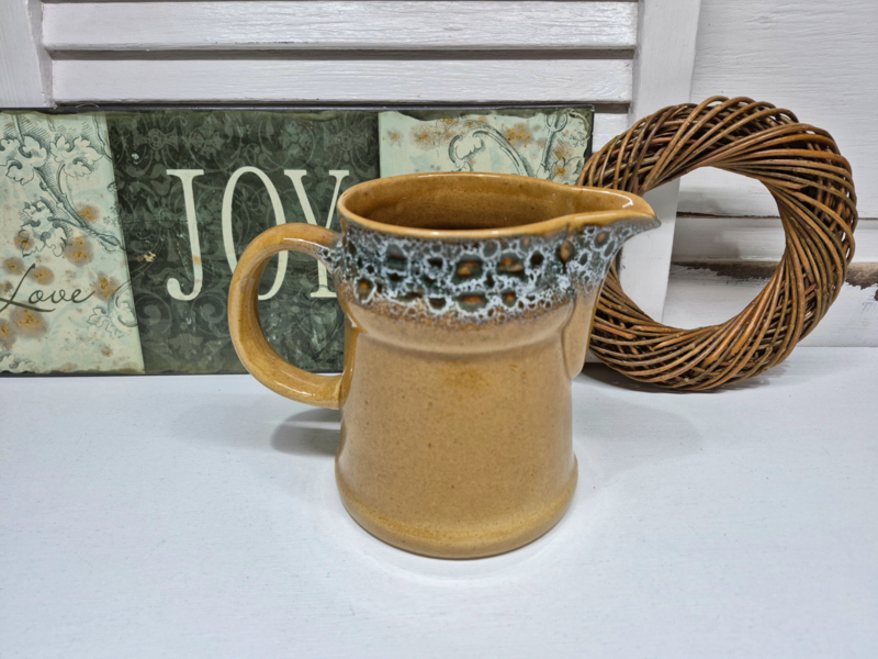 VEB Elsterwerda kanUit Oost Duitsland komt deze aardewerk kan met mooi druip glazuur..