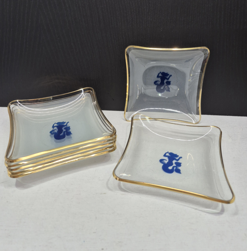 Vintage glazen gebaksbordjeHet zou kunnen dat deze bordjes afkomstig zijn uit Brazilië..